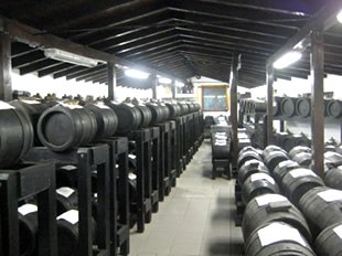 これがモスト(ブドウ汁)と呼ばれるもので、トネリコ材の樽に入れ5年の間熟成させます。