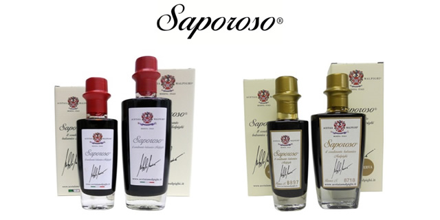 そして熟成6年目に、ある味わいに到達することに気づき、そこでステンレスタンクに移し熟成を強制的に止めます。サポローゾの誕生です。その後、6年の熟成を2年延ばし8年とすることで、より深い味わいに到達することを知り、サポローゾ・リゼルバが誕生しました。そして今、サポローゾはモストコットを木樽で熟成したバルサミコにマルキーギが自社でつくるワインビネガーを加えたIGP(生産地域表示のEU認証)バルサミコを5%加え、ここに新たな「サポローゾ」が誕生しました。