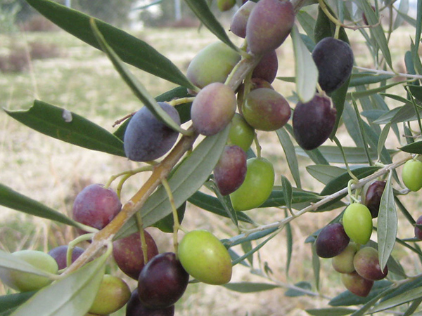 早いところは9月には食用オリーブの収穫が始まります。オイル用の収穫は10月から翌年の1月頃ですが、どのようなオイルをつくるかによって時期は異なります。10月はまだ実は緑色の早摘みの時期ですが、オイルの色も緑色でスパイシーな辛味、渋み、苦みのあるオイルが生まれます。秋に入り実は赤く色づきはじめますが、熟成して油分の量も多くなるとともにオイルの色は黄金色に近づき、味わいはマイルドでまろやかさが増してきます。
